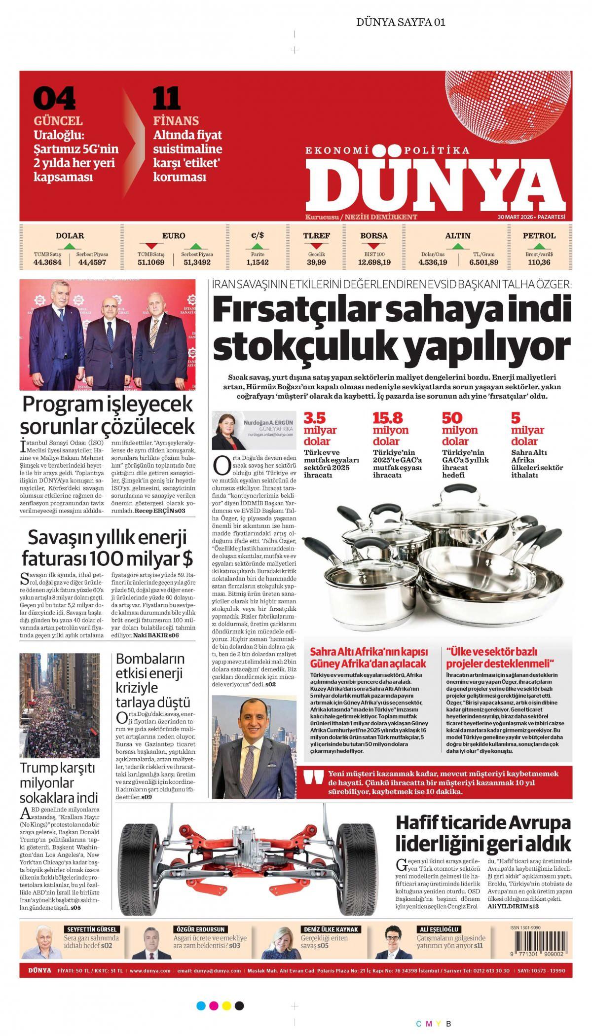 Dünya Gazetesi 31 Mart 2026 Günü Gazete Manşetleri