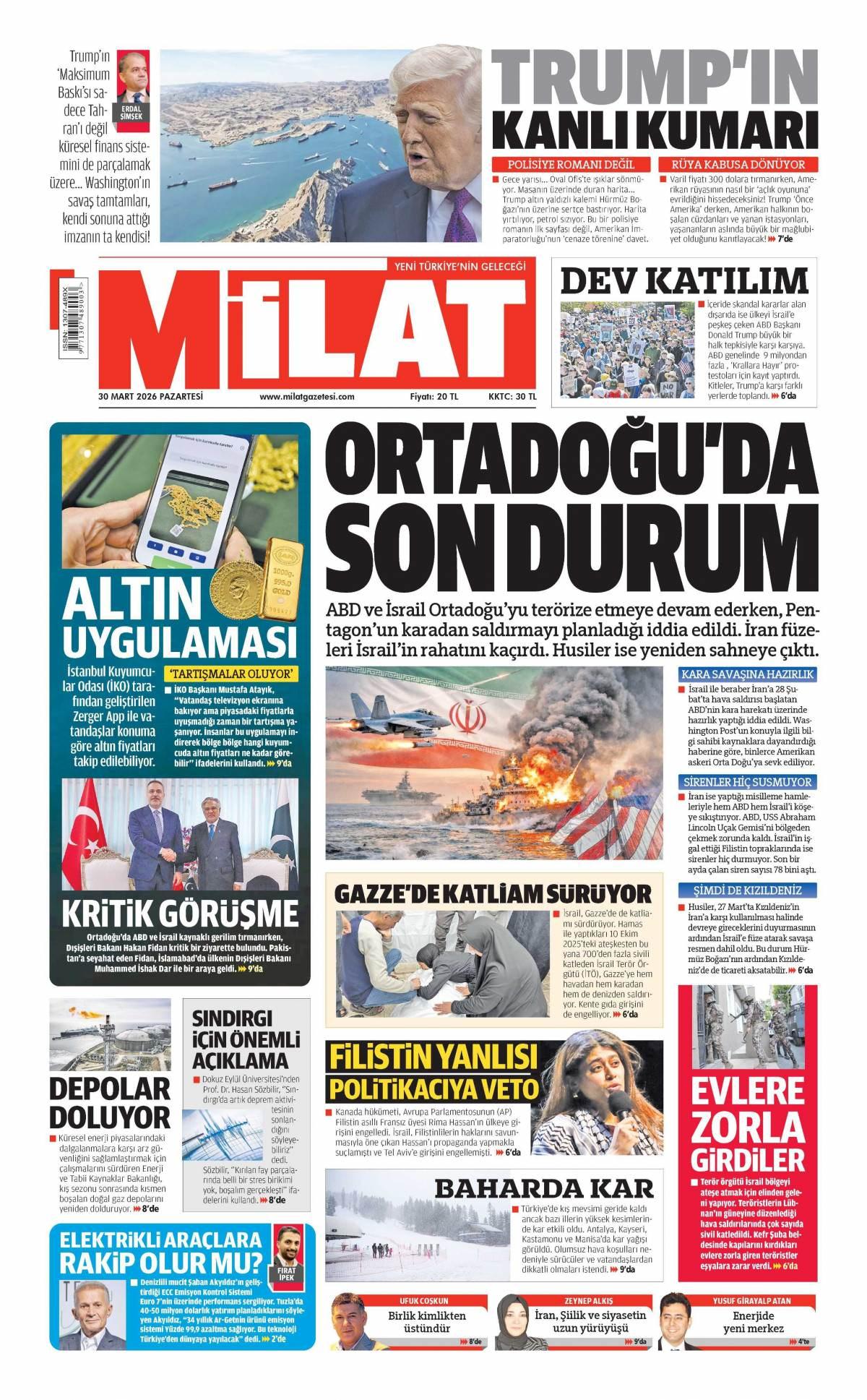 Milat Gazetesi 31 Mart 2026 Günü Gazete Manşetleri