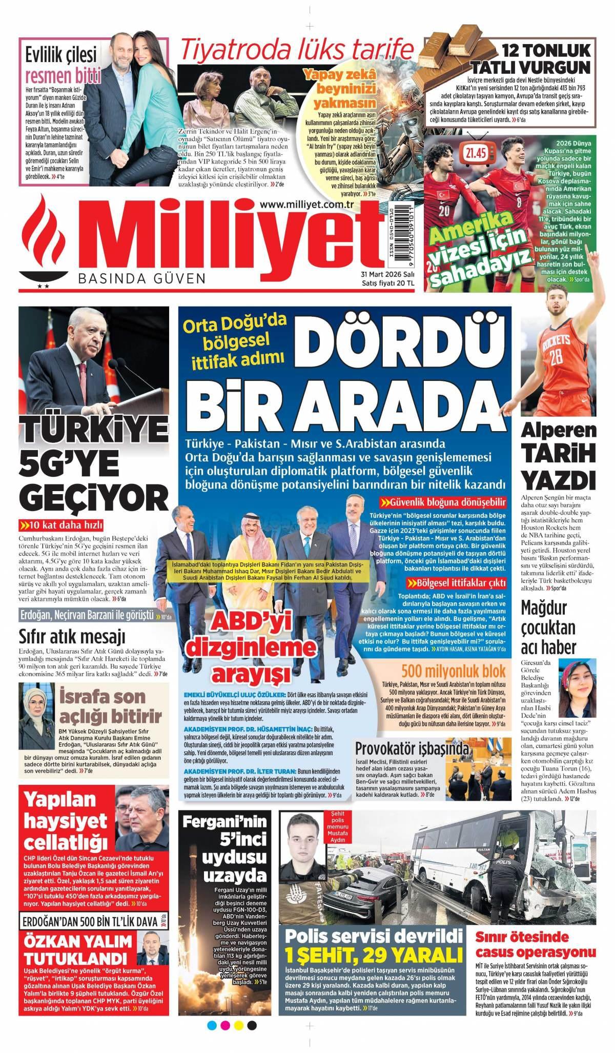 Milliyet Gazetesi 1 Nisan 2026 Günü Gazete Manşetleri