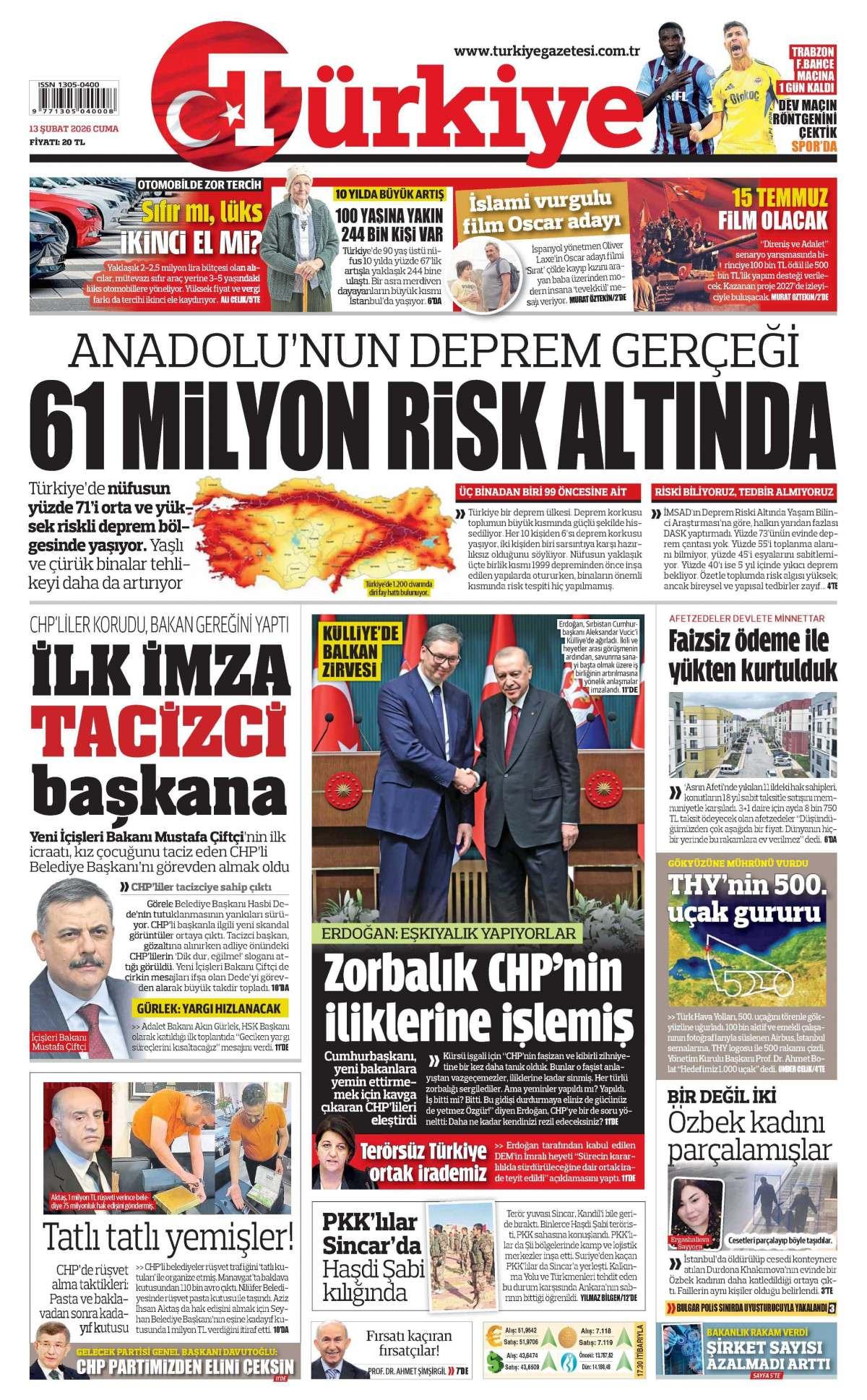 Türkiye Gazetesi 14 Şubat 2026 Günü Gazete Manşetleri